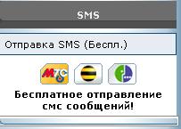 Бесплатная отправка СМС и ММС для Вашего сайта. Подходит как для светлых так и для темных дизайнов. Я знаю что уже создано очень много похожих скриптов, но они давно не проверялись и многие ссылки там уже не работают. Код <span style="color: rgb(0, 0, 0);"><div align="center"><span style="color: rgb(0, 0, 0);"> <a href="https://sendsms.ssl.mts.ru/" target="_blank"> <img src="http://bambun.ru/images/mts1.gif" border="0" align="middle"></a> <a href="https://www.b